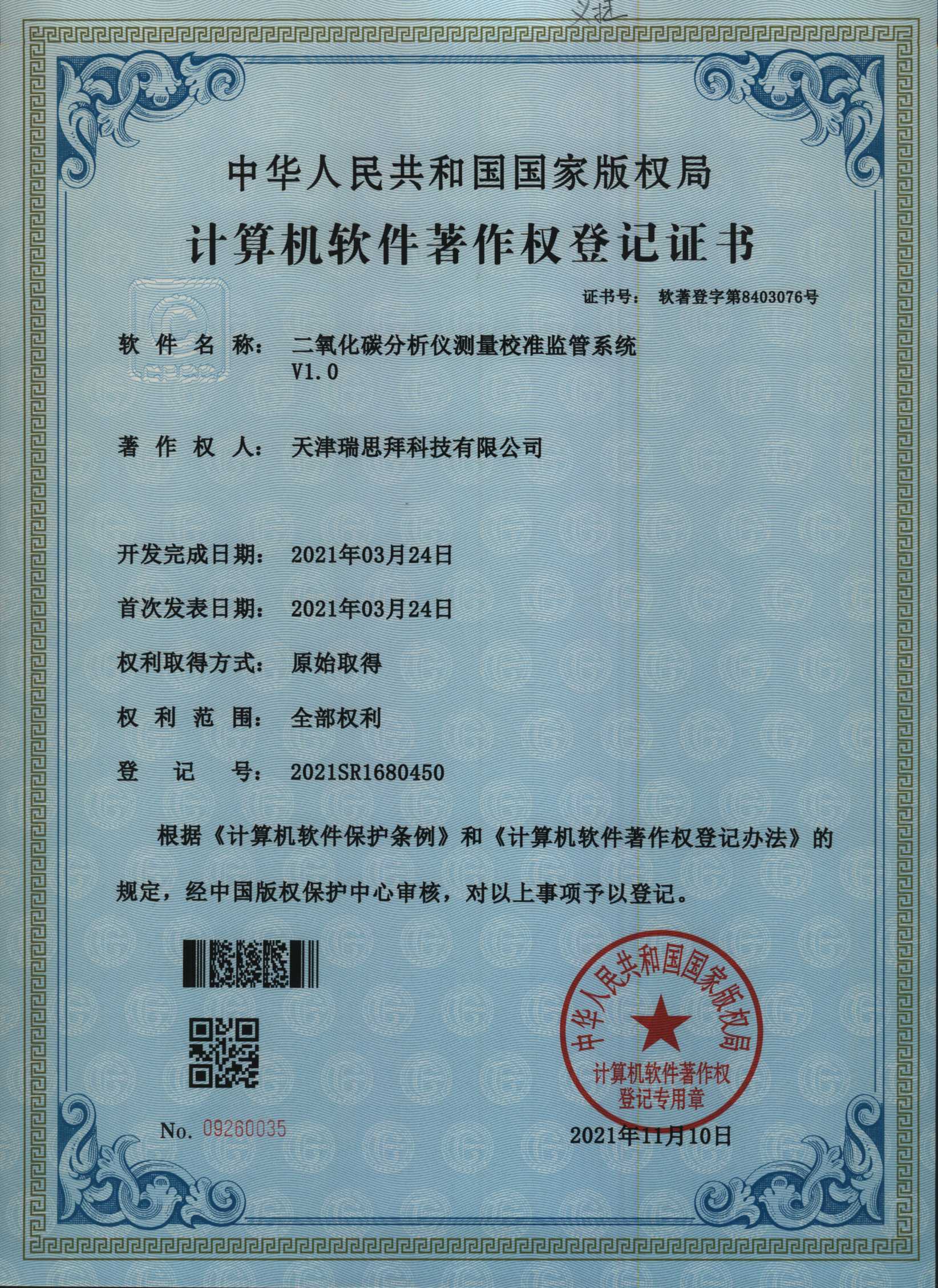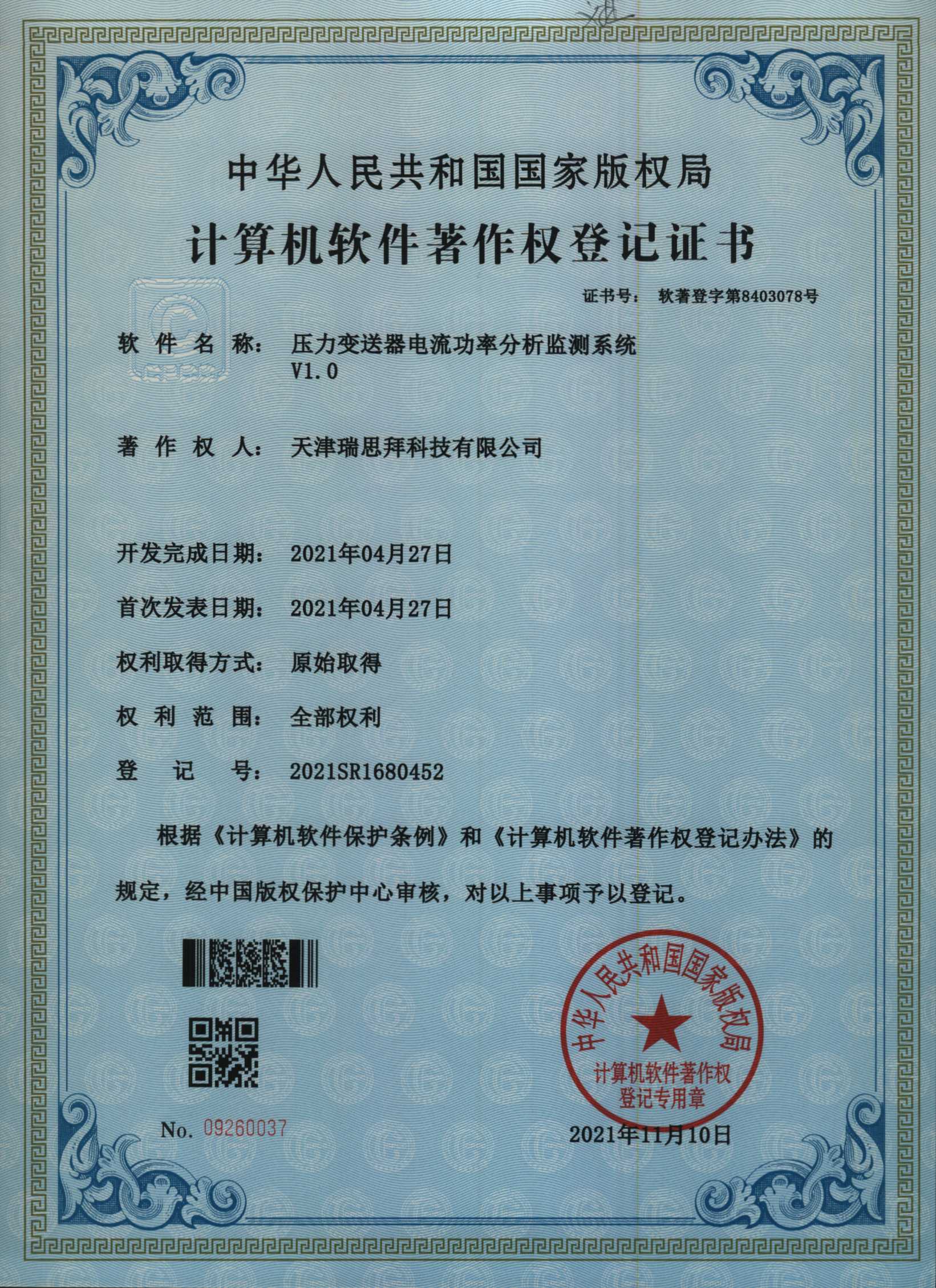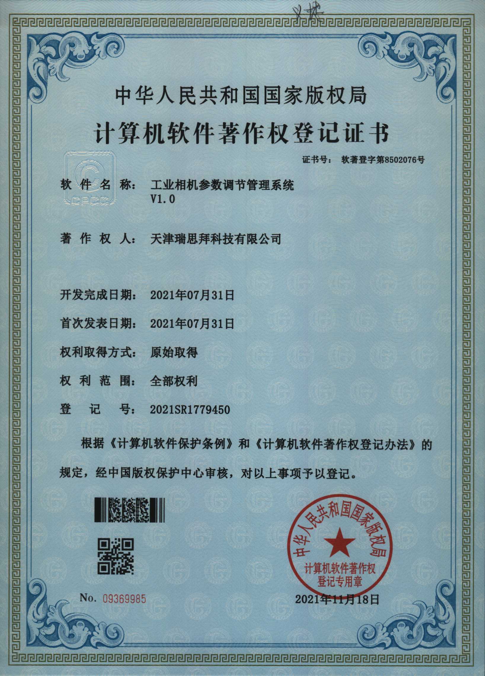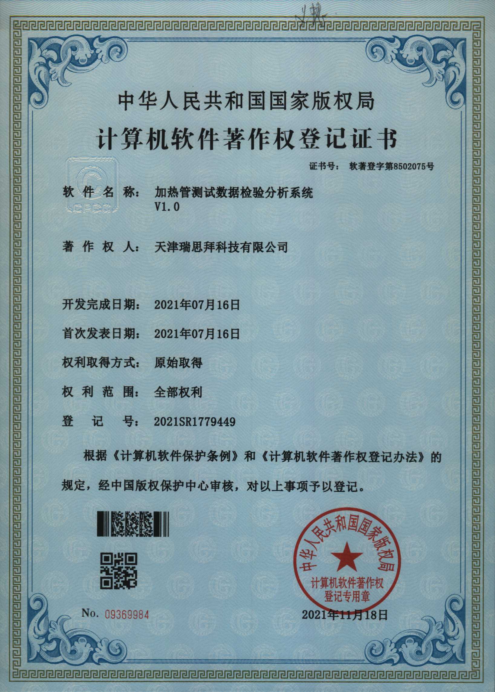 現(xiàn)如今天津瑞思拜科技有限公司申請的軟件著作權(quán)證書已經(jīng)下發(fā)通過: