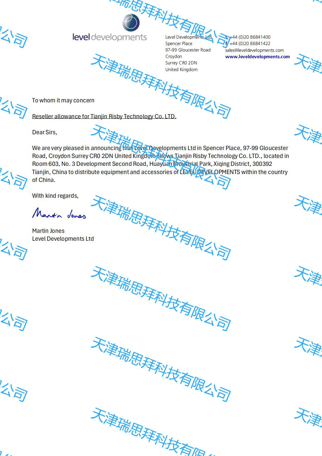 天津瑞思拜科技有限公司是Level Developments的授權代理商,對Level Developments的全部產(chǎn)品有銷售權限,如有需要請聯(lián)系。
